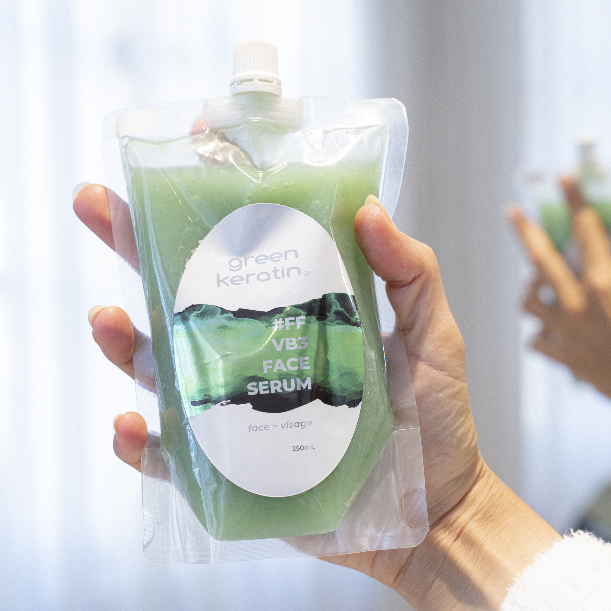 Les flocons blancs du sérum sont le Hyacollagreen encapsulé (collagène végétalien + acide hyaluronique)